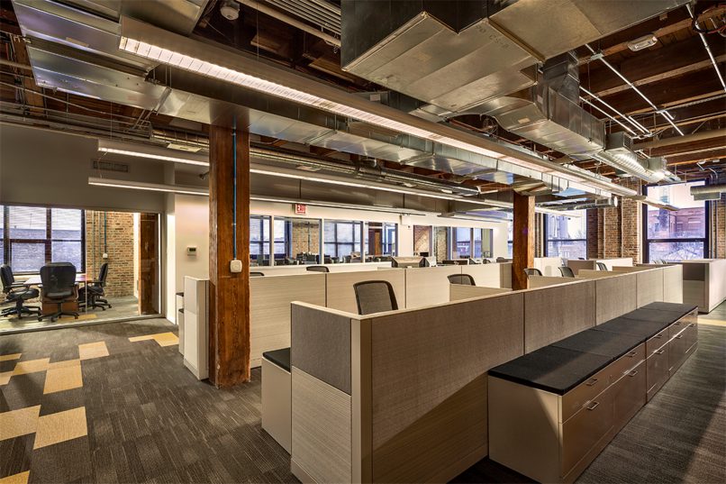 K.R. Miller Contractors was general contractor for the renovation of this four-story loft. The conversion became office space for the CPS Information Technology Center.