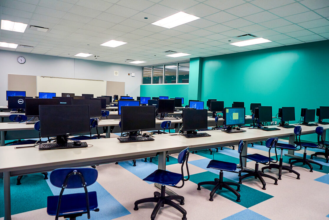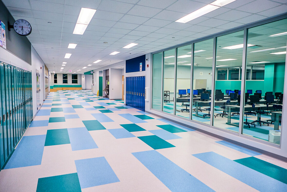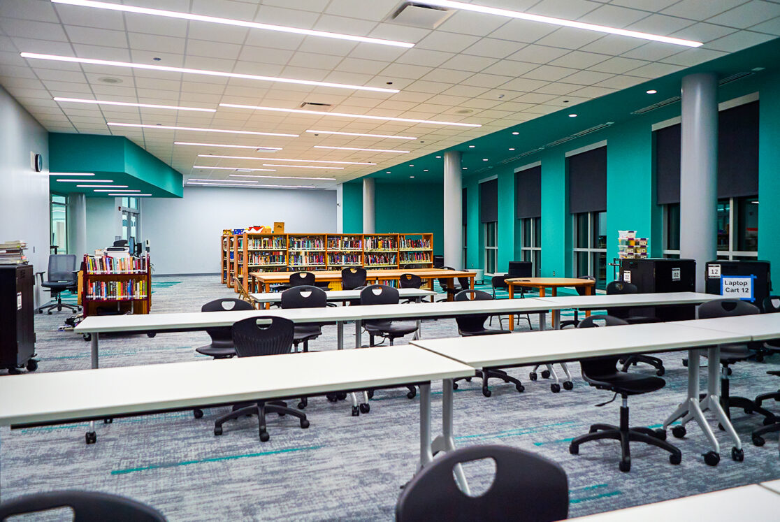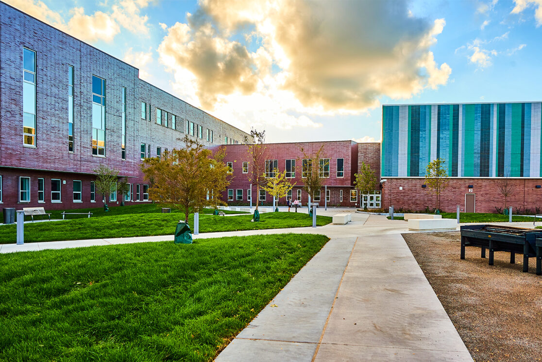 This 178,000 sq. ft. new construction project accommodates 1,080 students at the selective enrollment high school. Designed with enhanced building acoustics, the high school also features advanced STEM and science labs, a state-of-the-art black box theater, and a dance studio.