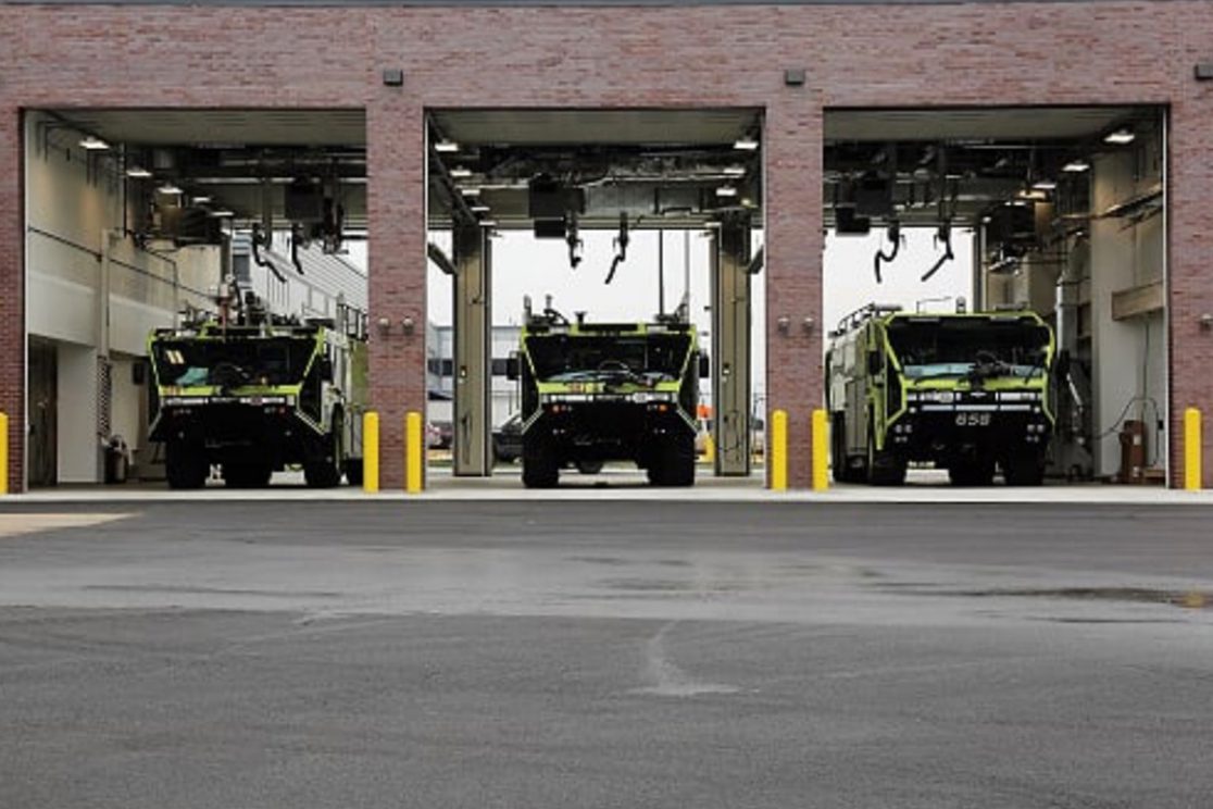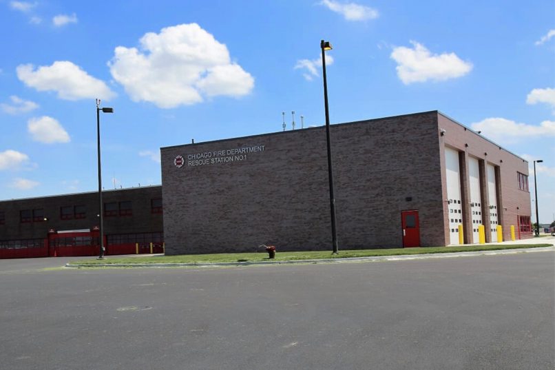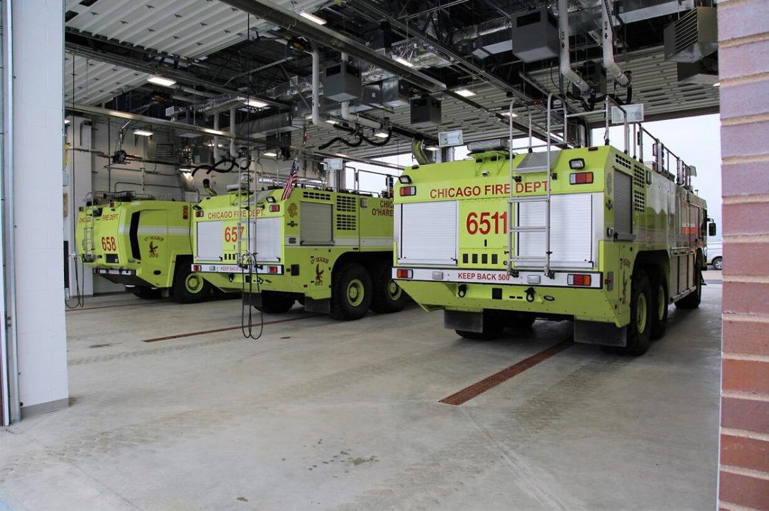 This new construction at O’Hare International Airport is an aircraft rescue and firefighting facility that includes new bays for the fire rescue equipment, lockers, and bunk rooms.